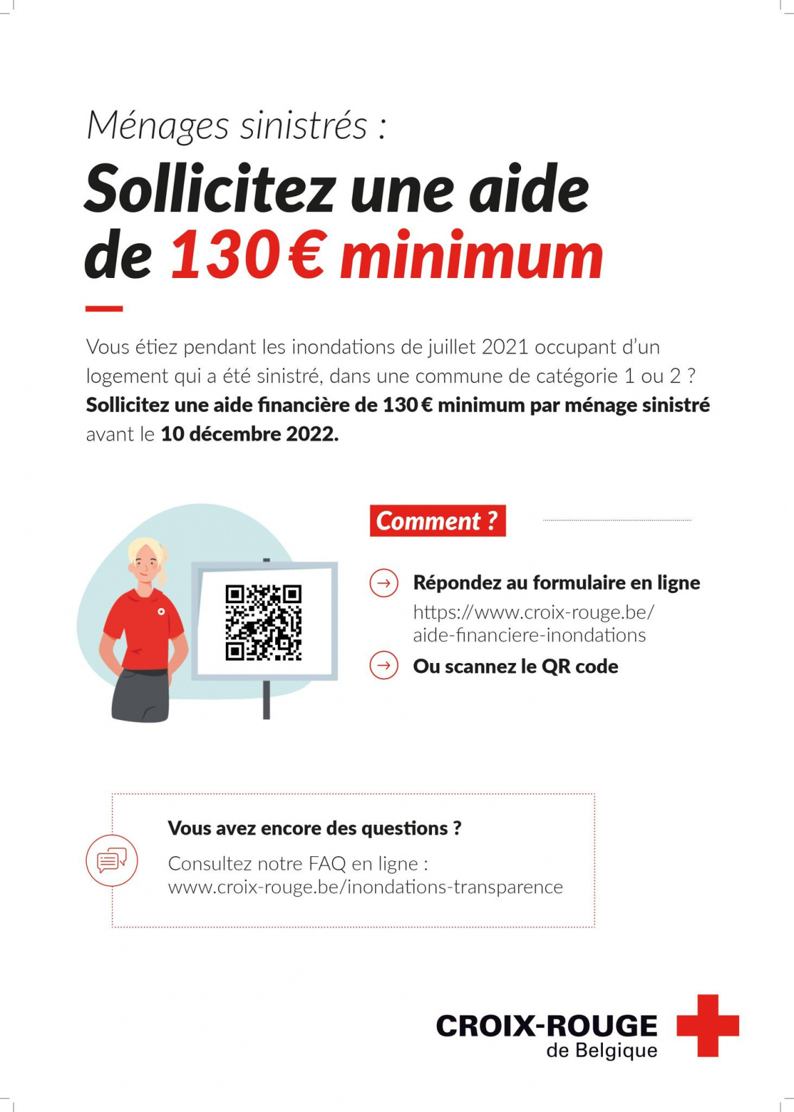 N'hésitez pas à consulter le site Internet de la Croix-Rouge pour plus d'infos sur cette aide : https://www.croix-rouge.be/inondations-transparence/aide-financiere/