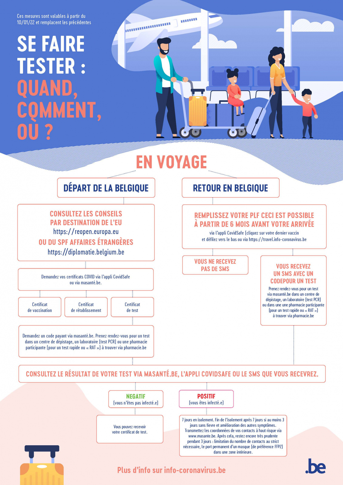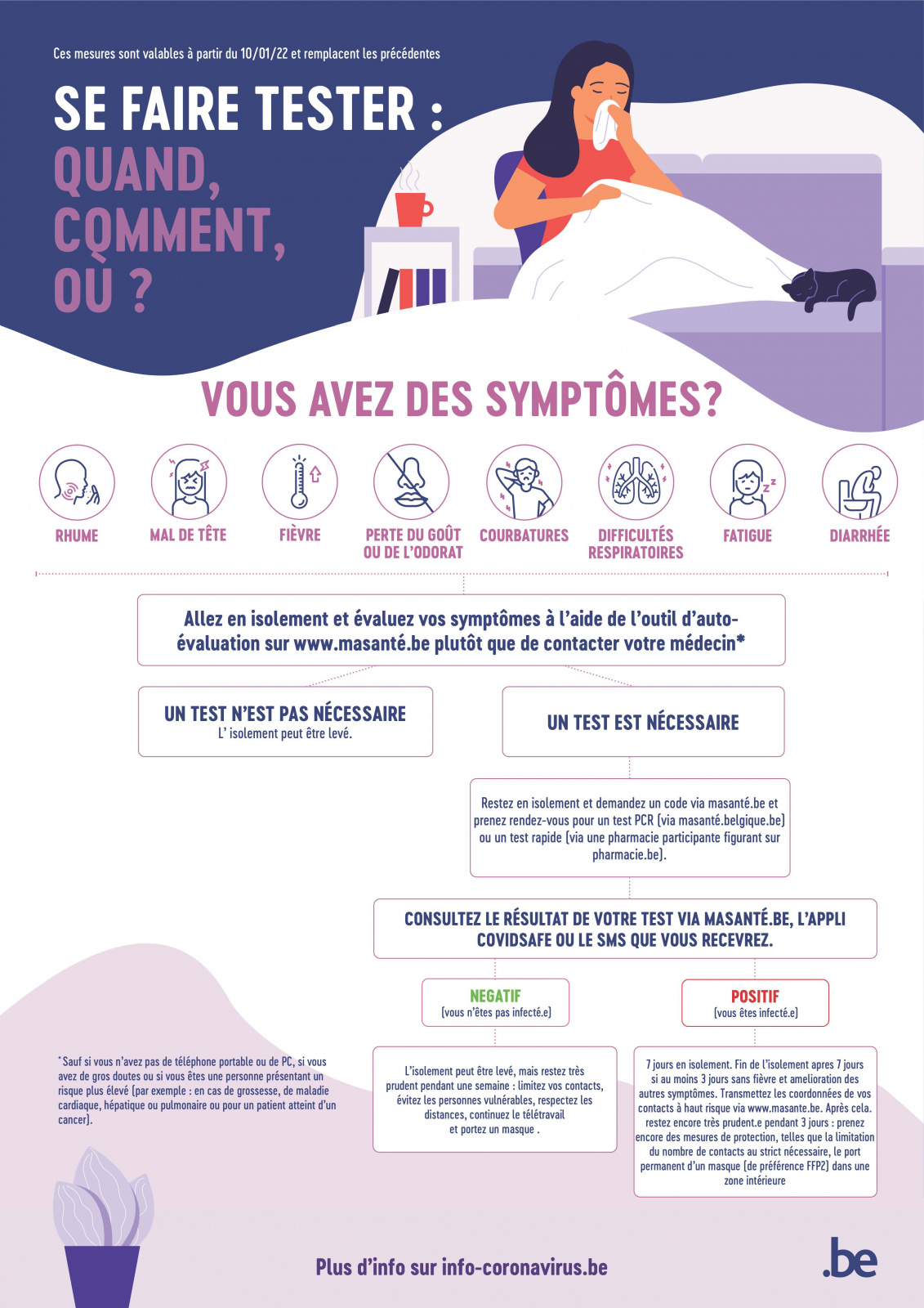 Les mesures de testing et d'isolement/quarantaine en vigueur depuis le 10 janvier 2022