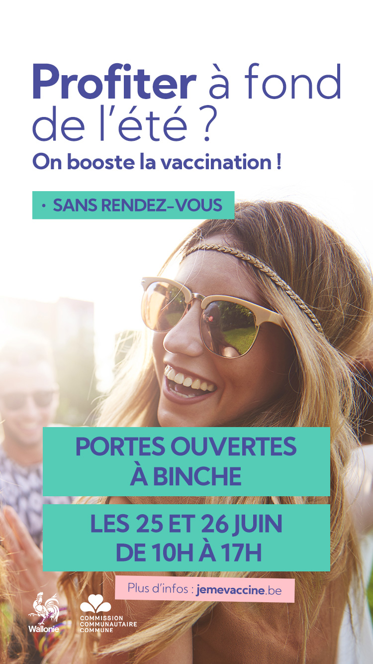 Dans le cadre de l'opération "Vacciné(e) avant l'été", le centre de vaccination de Binche passe en mode "Portes ouvertes" ce samedi !