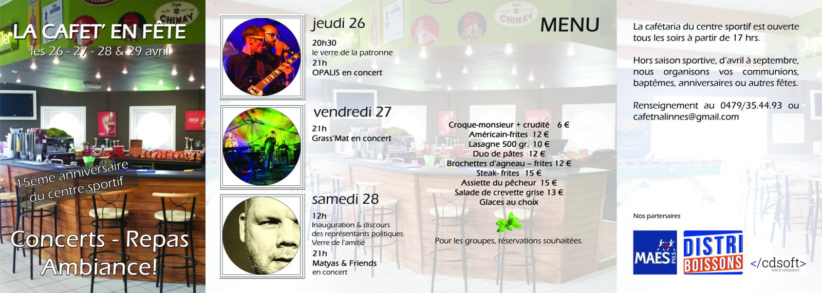 Les 27, 28 et 29 avril prochains, le Centre sportif Jules ROULIN-DORVILLEZ de Nalinnes fêtera ses 15 ans lors d'un grand week-end festif.