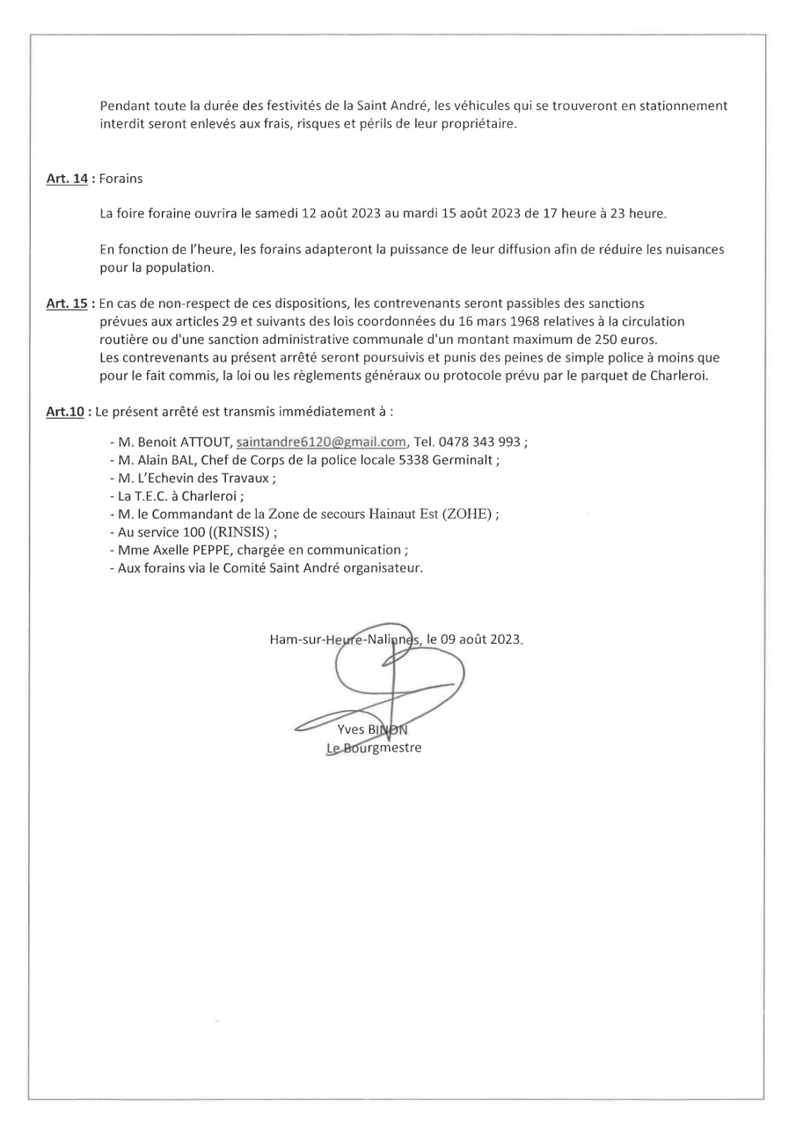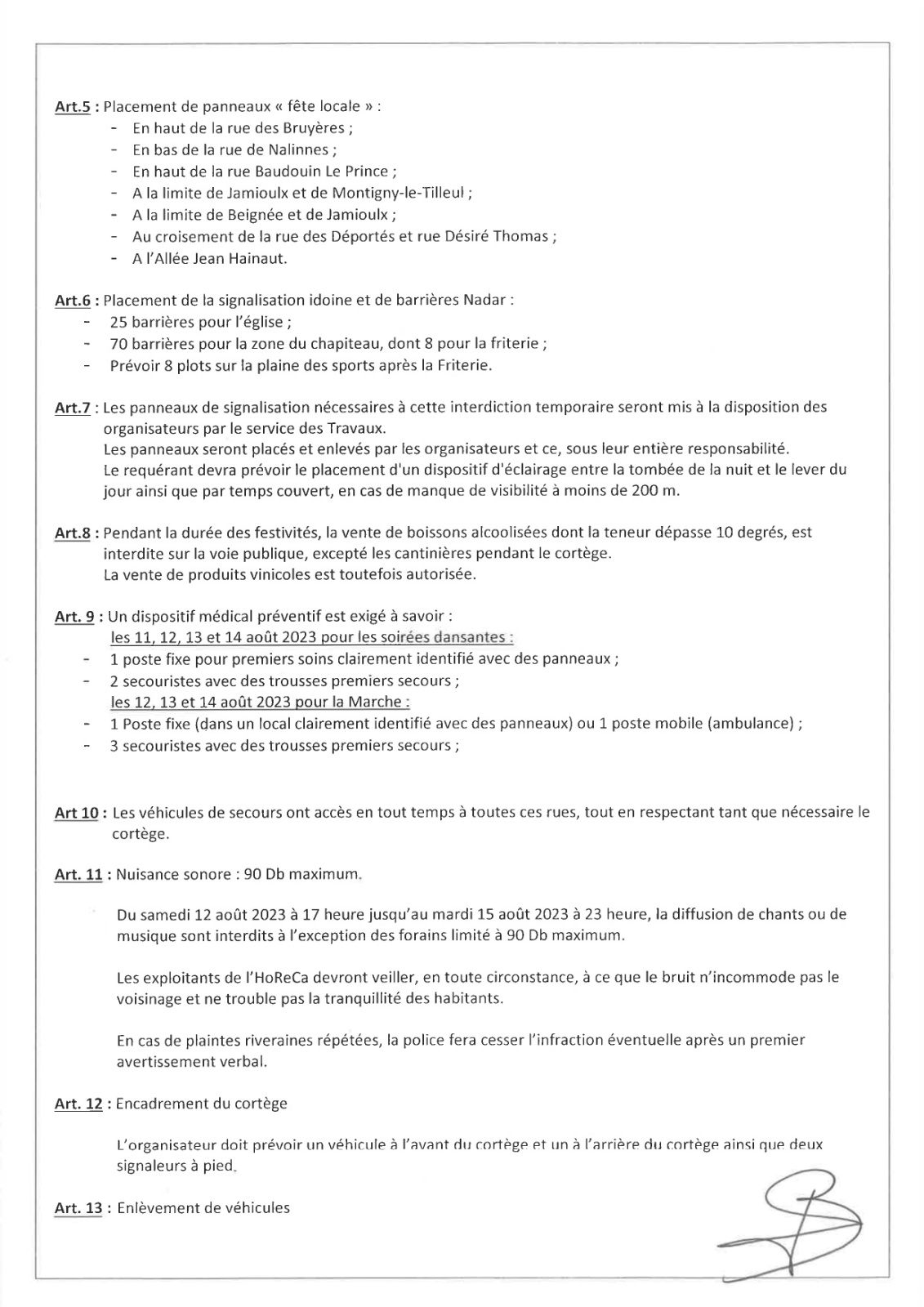 Arrêté de police relatif à la Marche Saint-André de Jamioulx