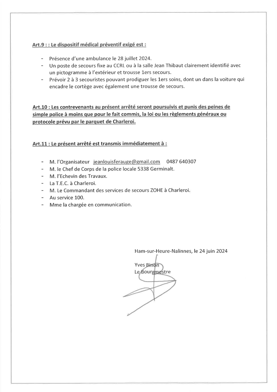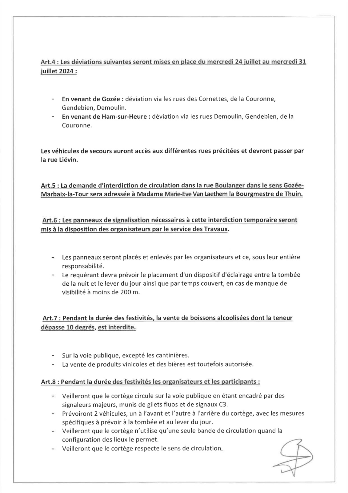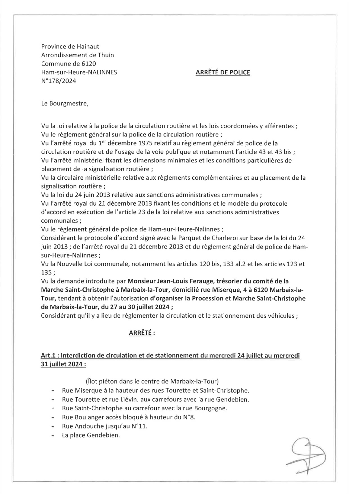 Arrêté de police relatif à la Marche Saint-Christophe de Marbaix-la-Tour