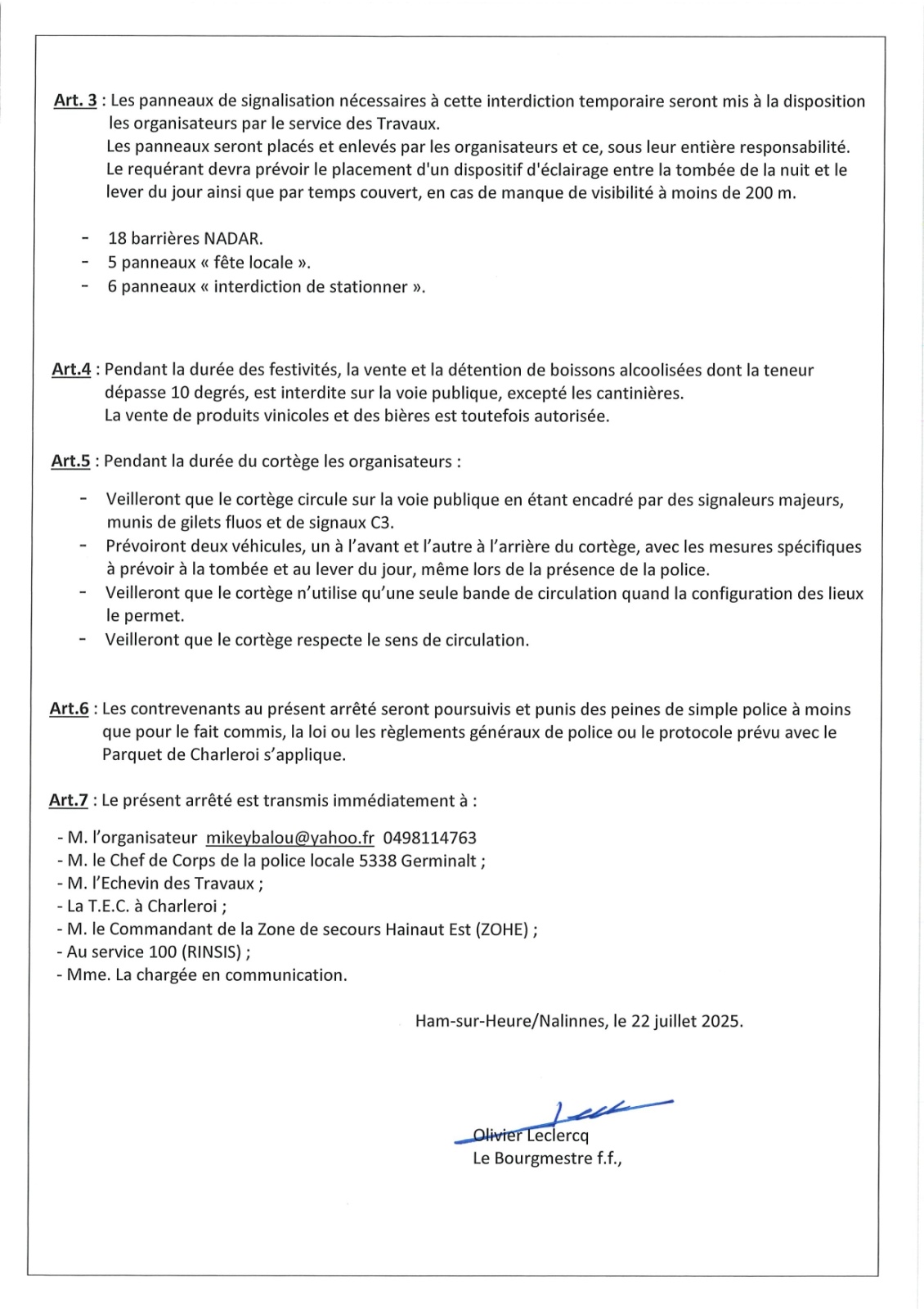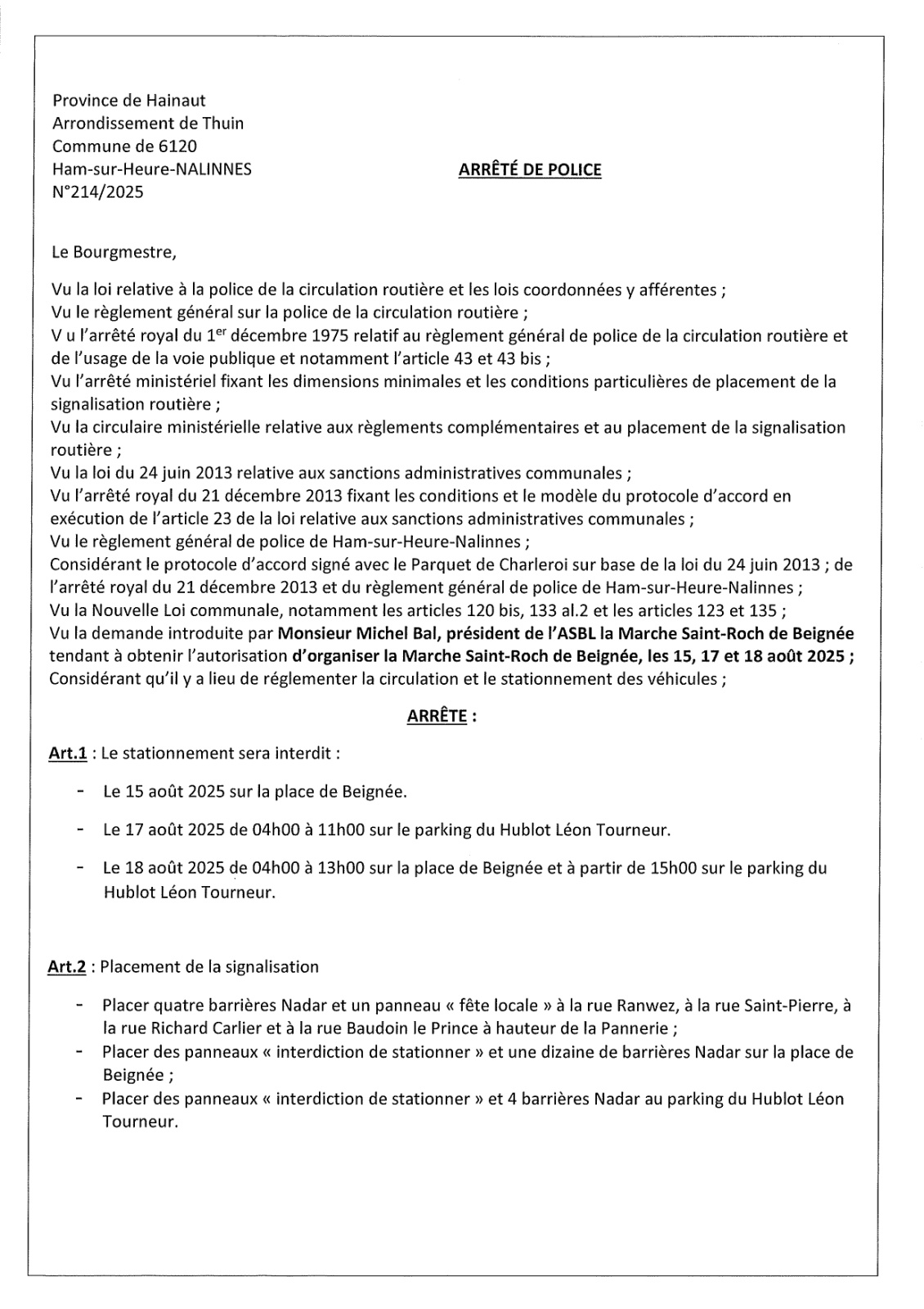 Arrêté de police relatif aux festivités de la Saint-Roch à BEIGNEE du 15 au 18 août 2025