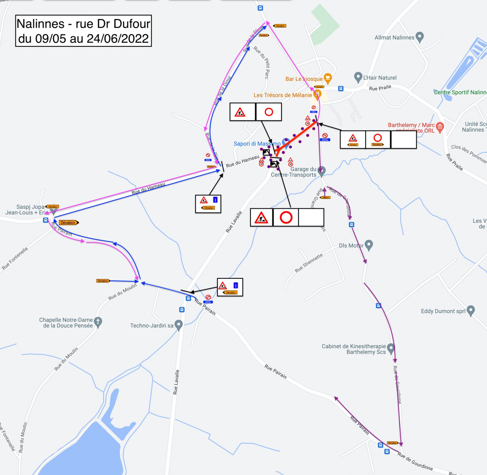 Voici la déviation qui est mise en place pendant ce temps :