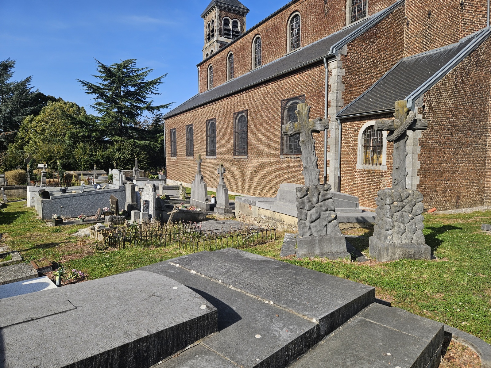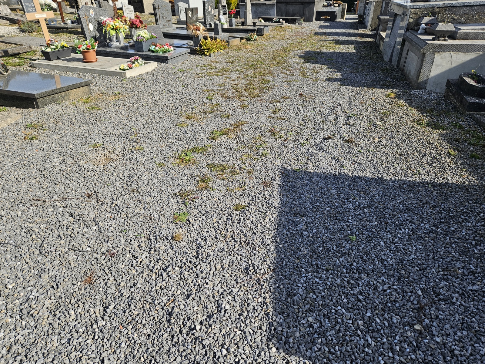 A Beignée, le cimetière a été travaillé et végétalisé en mars 2023. On peut voir qu’il reste une fine couche de gravier et cela est tout à fait normal. La totalité des cailloux n’est jamais enlevée afin de conserver une assise pour un passage plus aisé dans les allées.