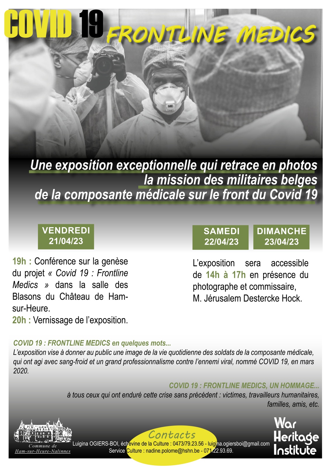 L'exposition "COVID 19 : Frontline Medics" sera visible de vendredi à dimanche au Château de Ham-sur-Heure. L'entrée est gratuite.