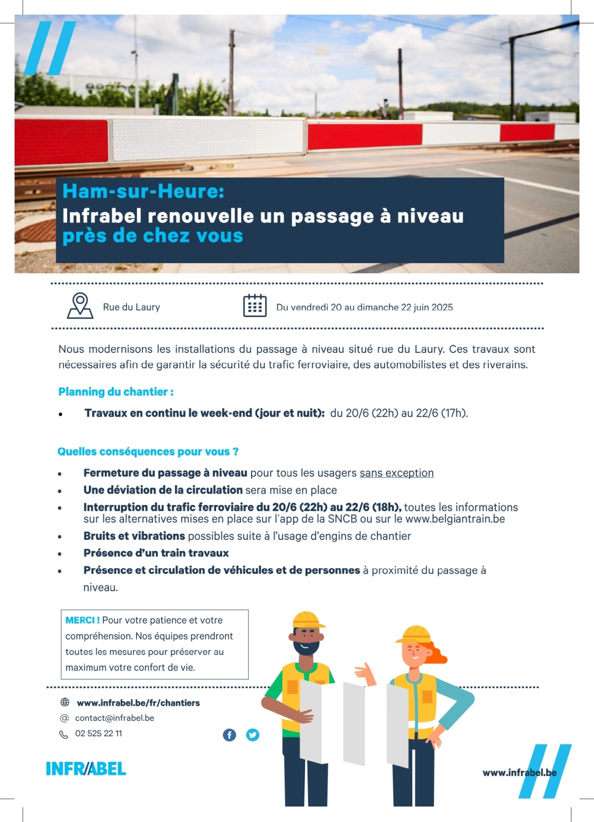 Phase 3 : Travaux de modernisation du passage à niveau situé à la rue Laury à Ham-sur-Heure-Nalinnes (Jamioulx) – du 20 juin (22h) au 22 juin (17h)