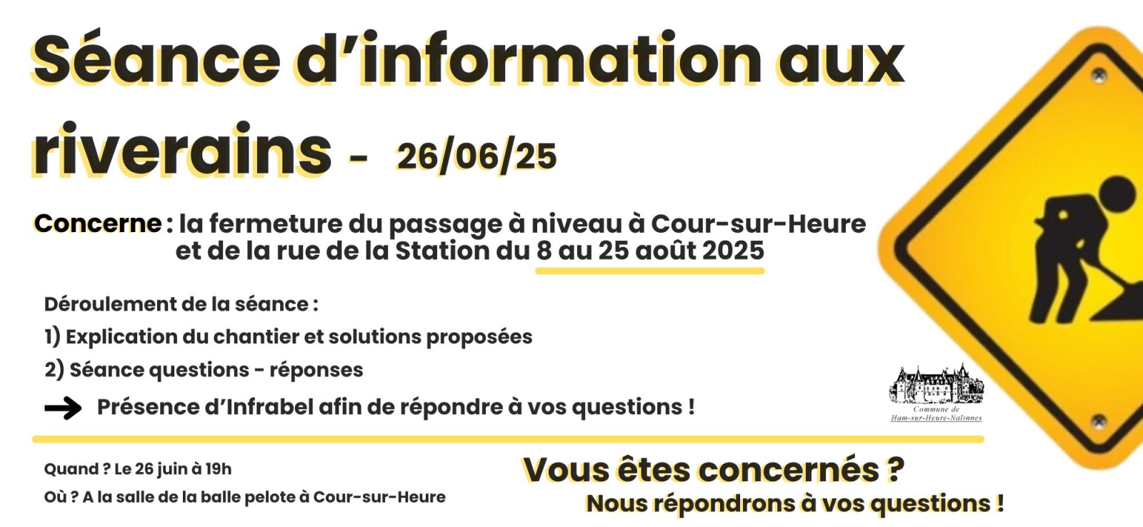 A ce sujet, une réunion d’information aux riverains est organisée le 26 juin prochain :