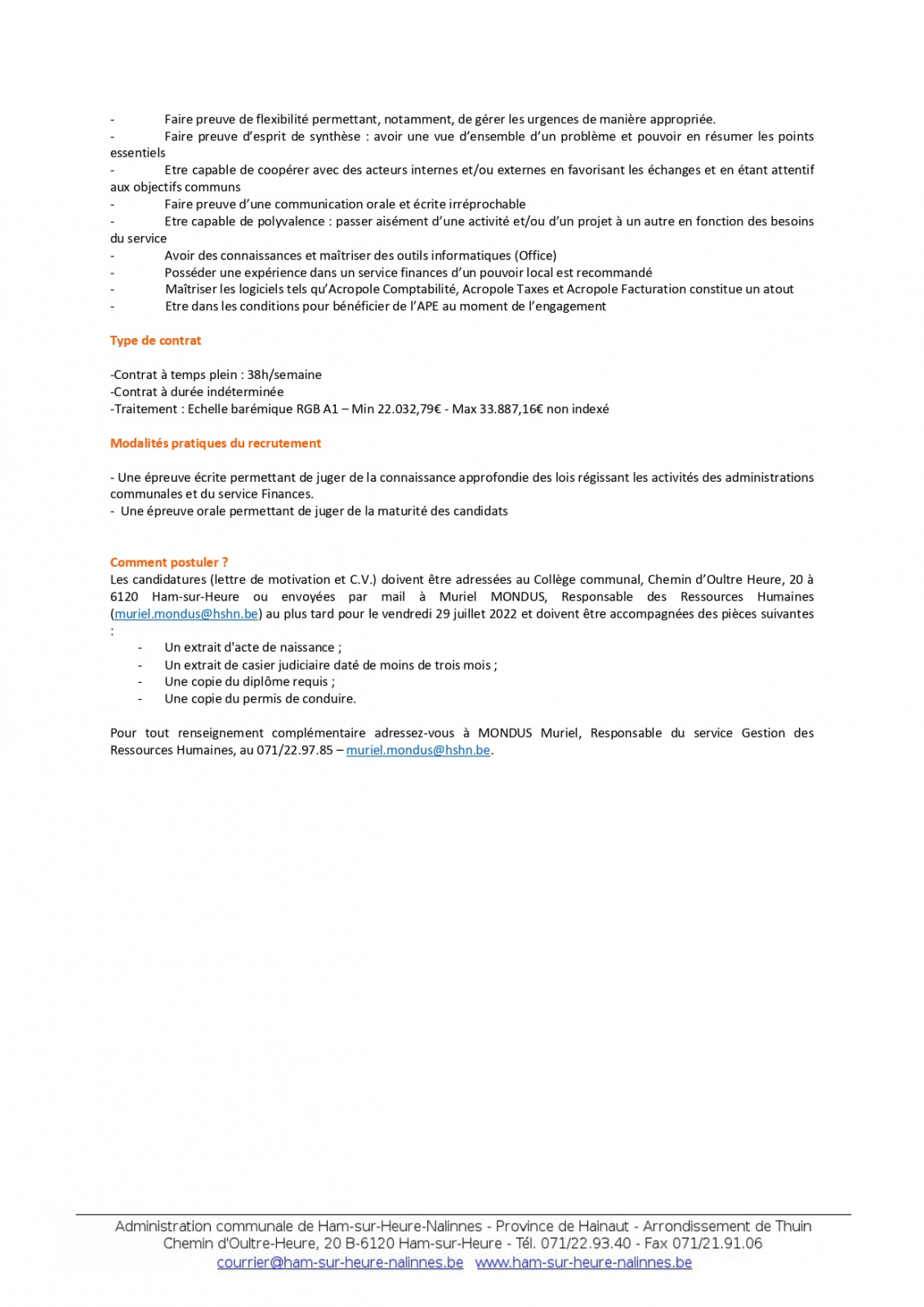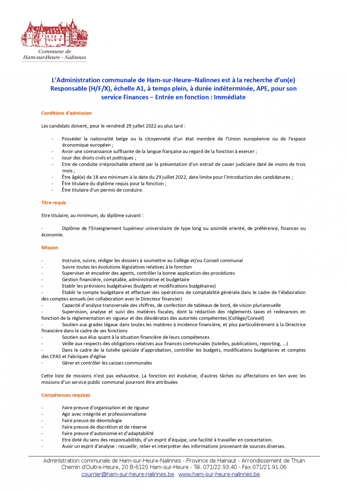 L'Administration communale procède à l'engagement d'un(e) Responsable du Service Finances