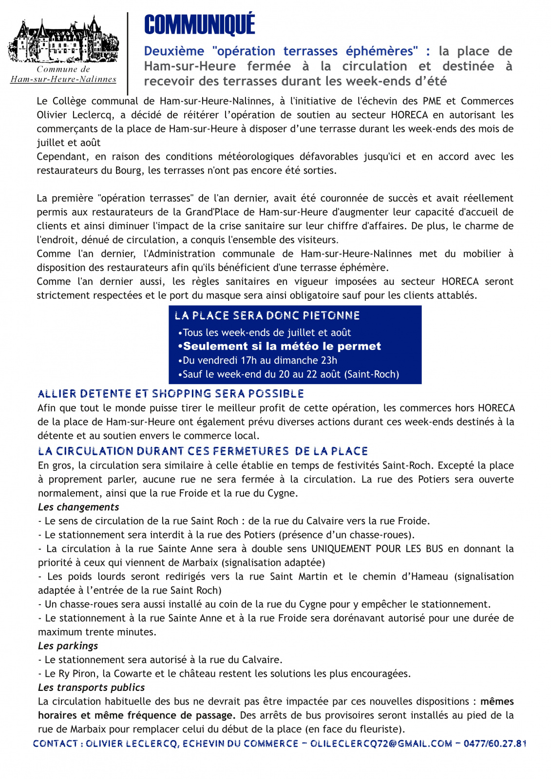 L' "opération terrasses éphémères" pourra enfin avoir lieu ce week-end sur la place de Ham-sur-Heure