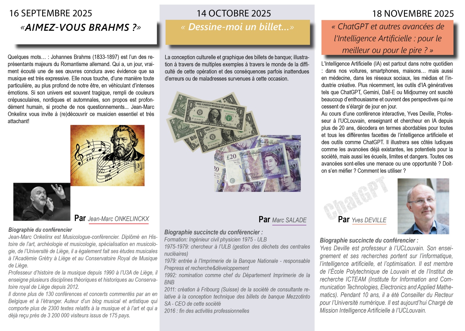 Voici le programme des trois prochains événements :