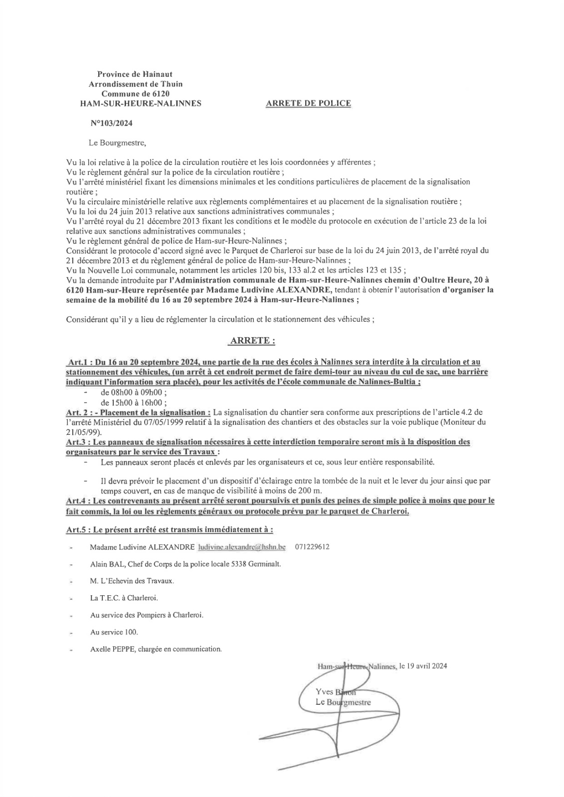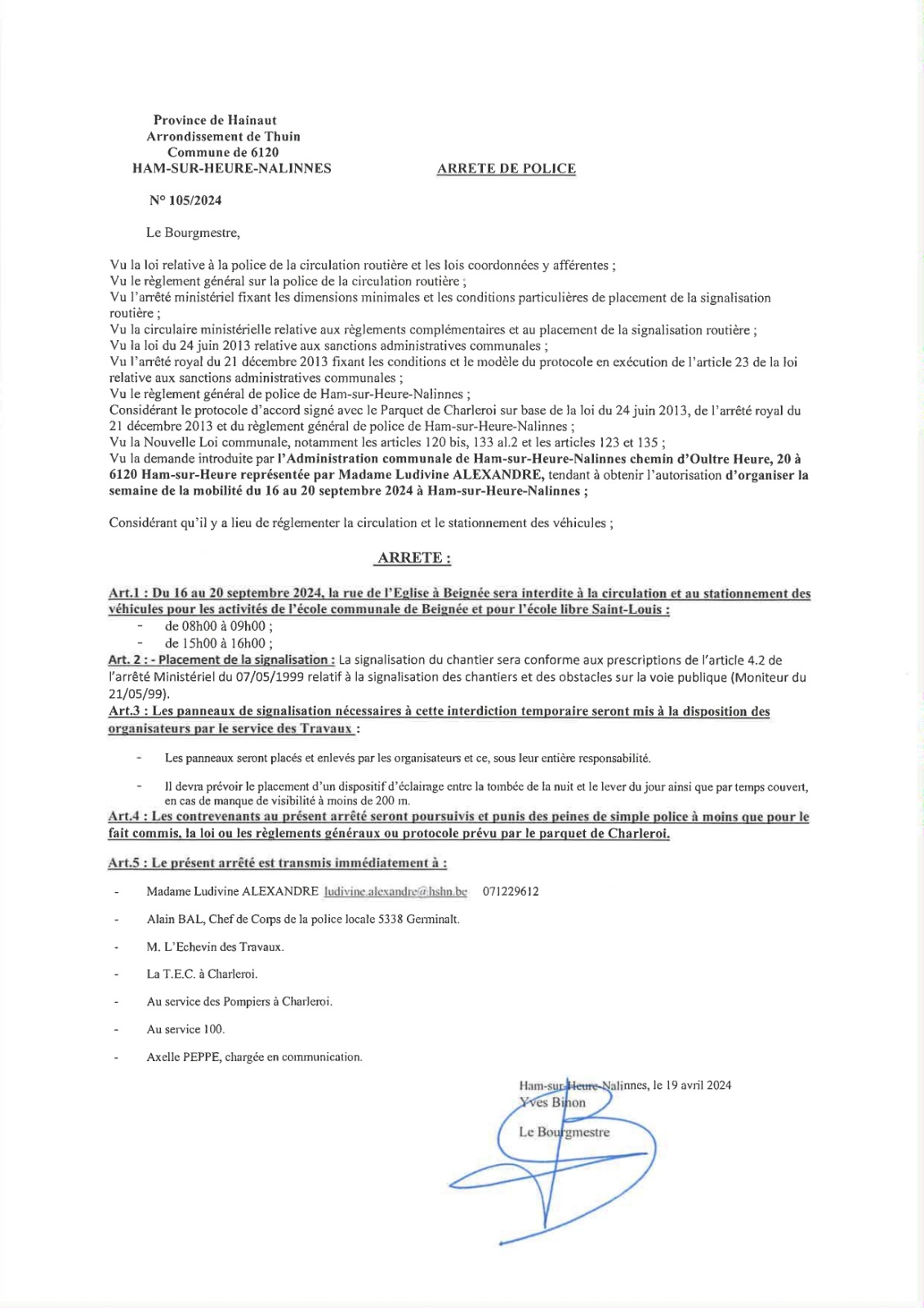 Voici par ailleurs, les arrêtés de police qui ont été pris afin de mener au mieux cette opération.