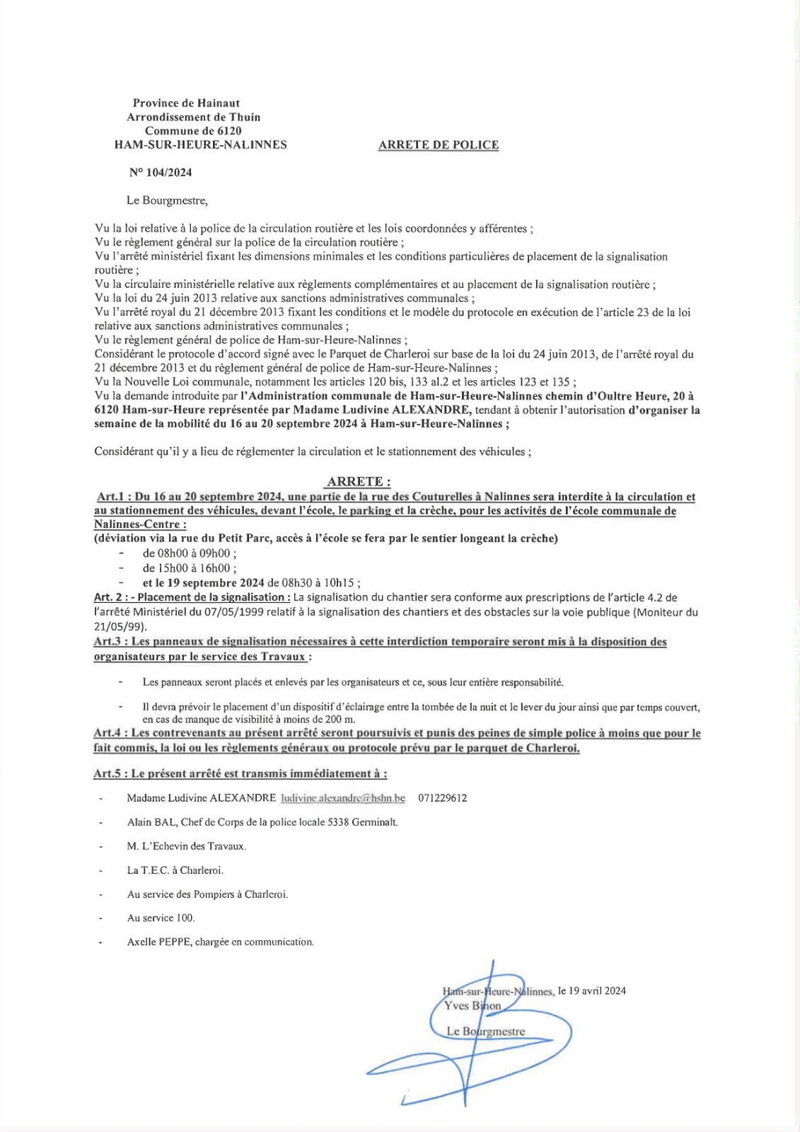 Arrêté de police rue Willy Brogneaux à Jamioulx