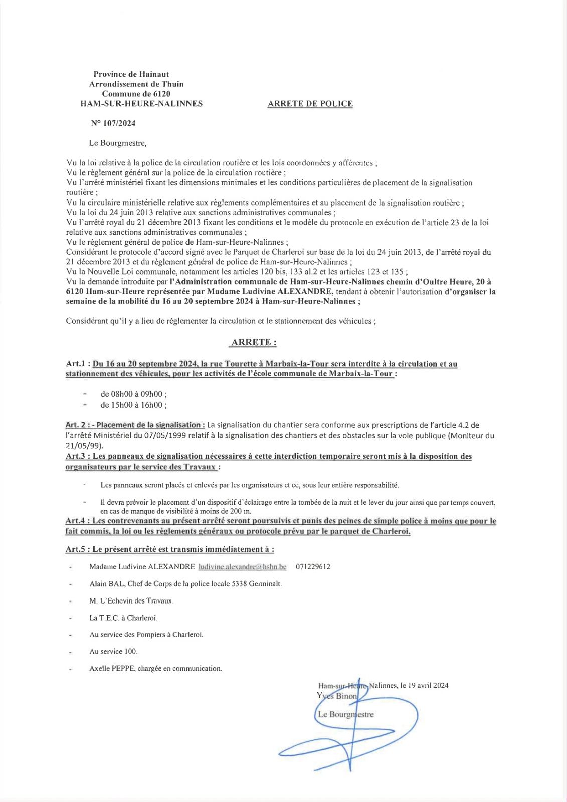 Arrêté de police rue Tourette à Marbaix-la-Tour