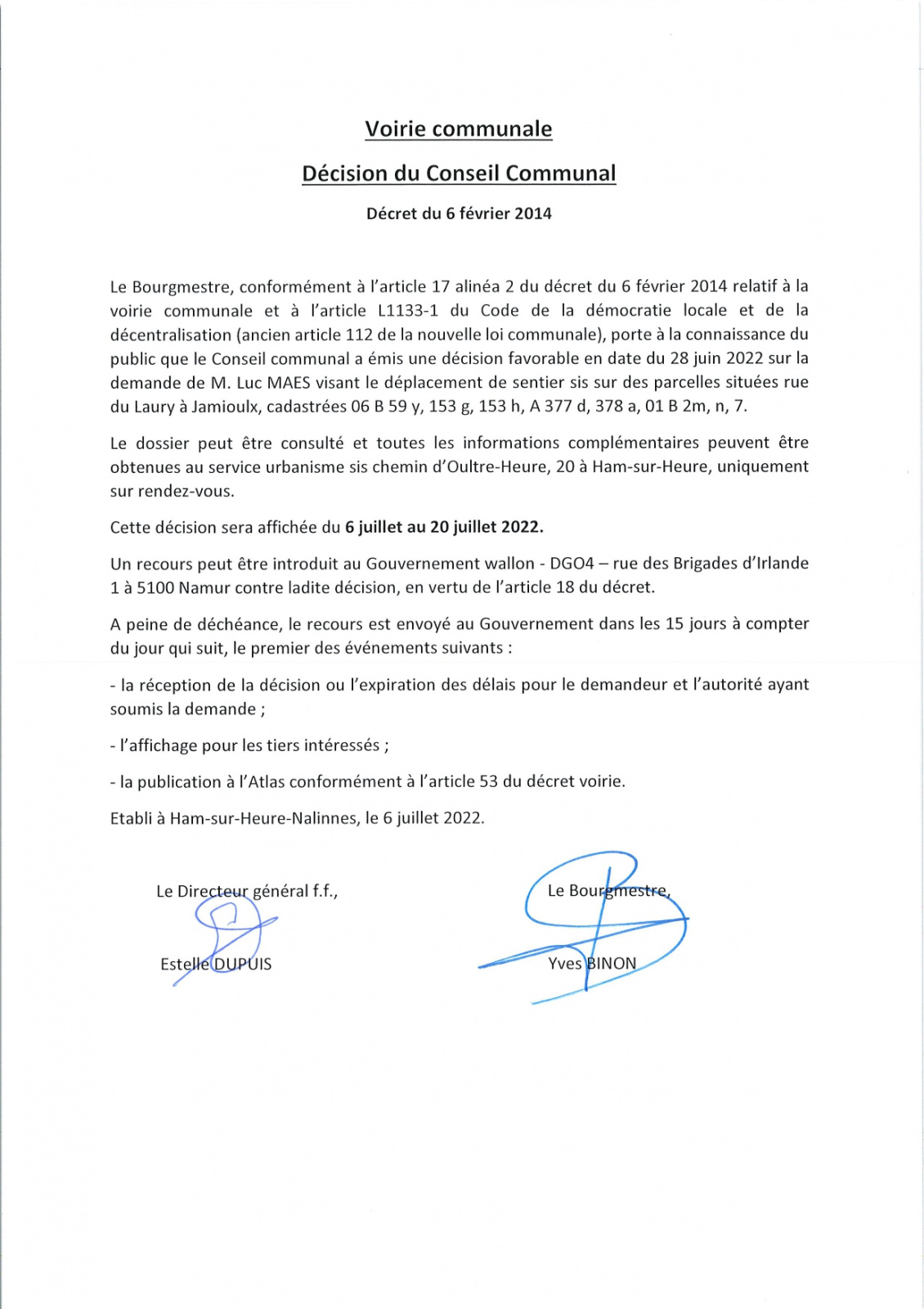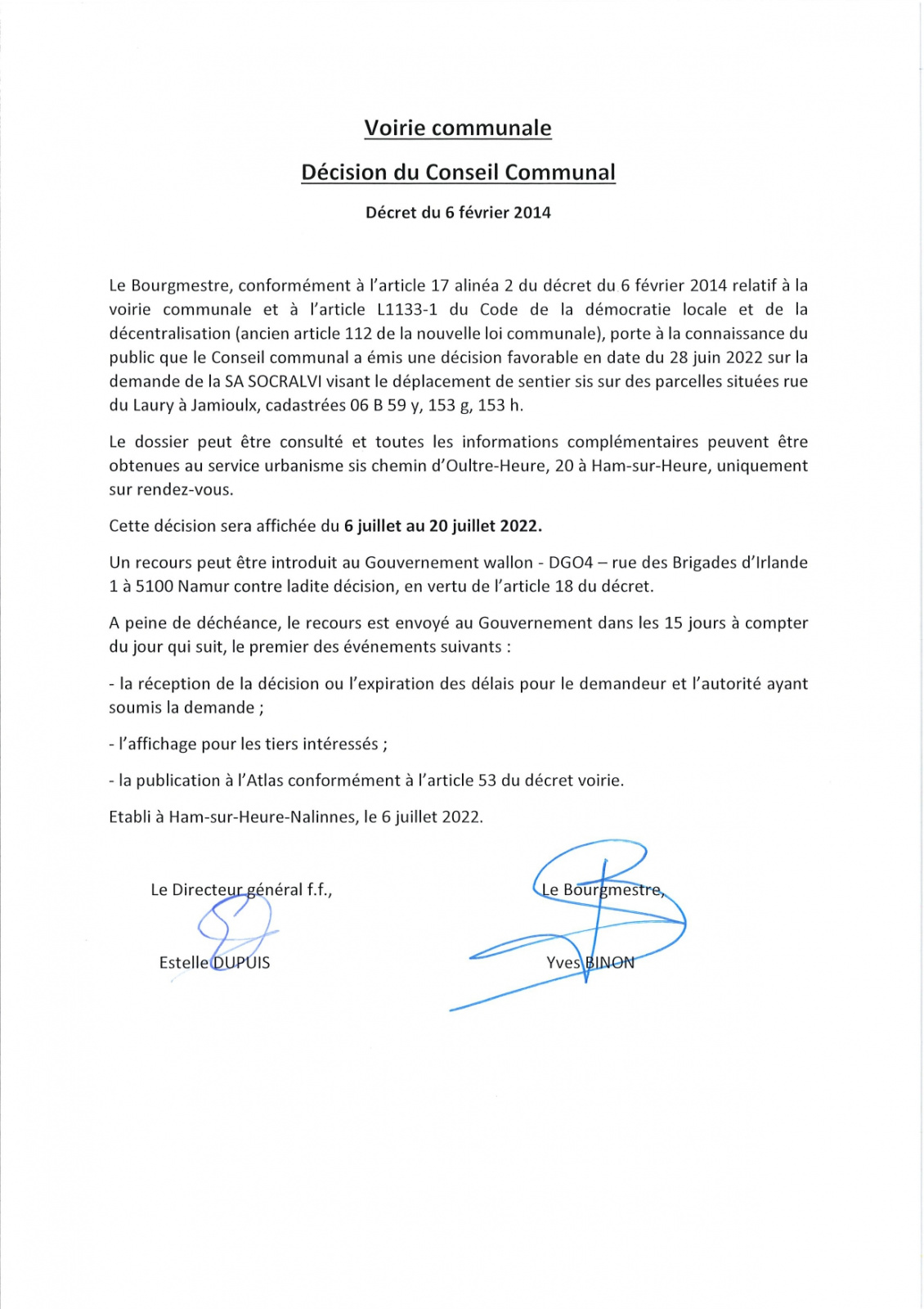 Voici les décisions du dernier conseil communal concernant le "Dossier du Laury"