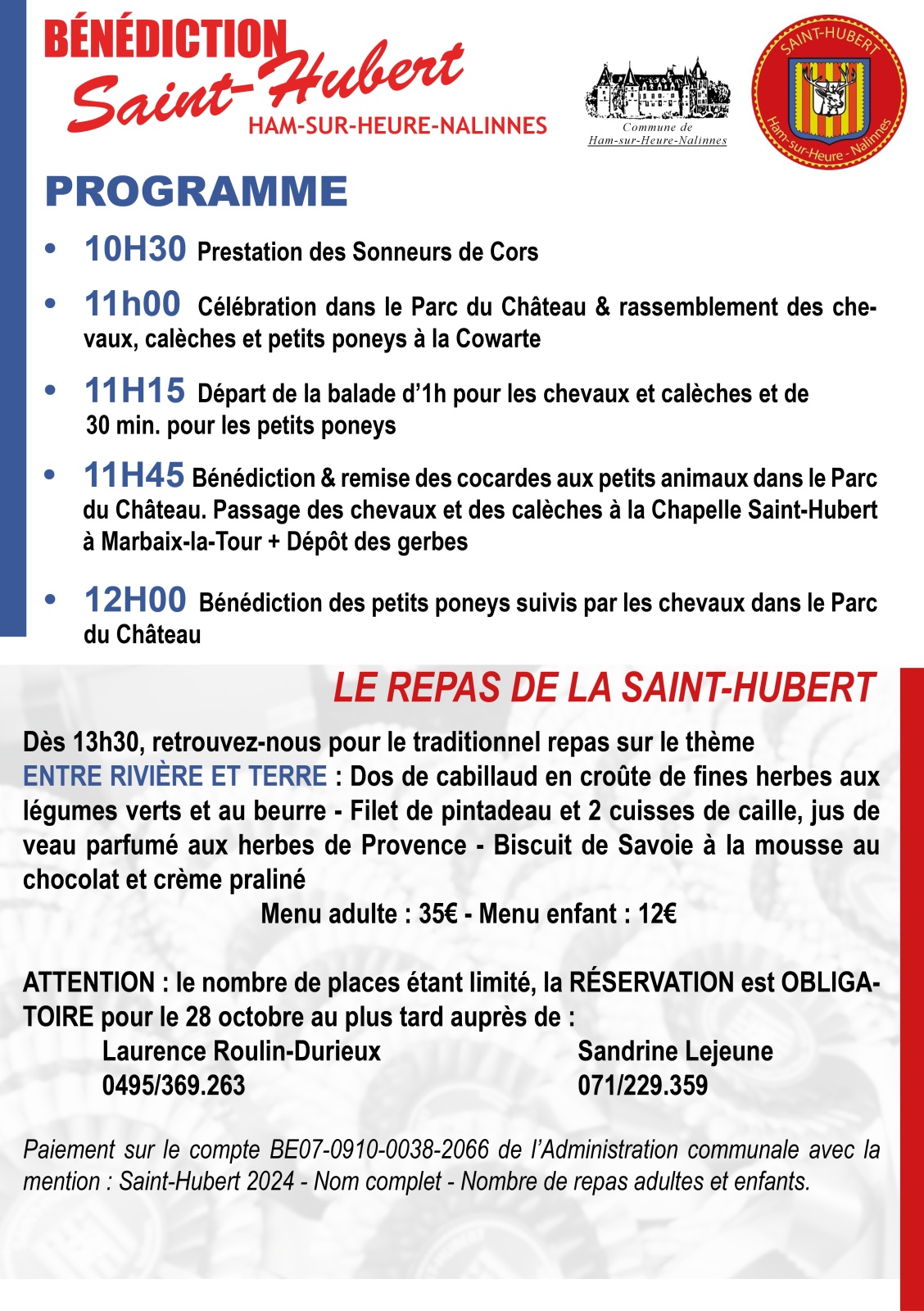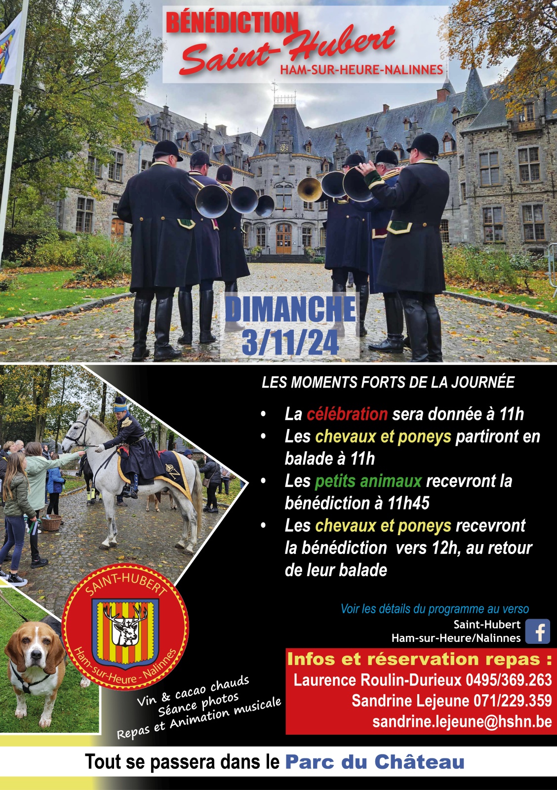 Notez bien également que si vous désirez particper au repas de la Saint-Hubert, la date limite de réservation a été fixée au 28 octobre.