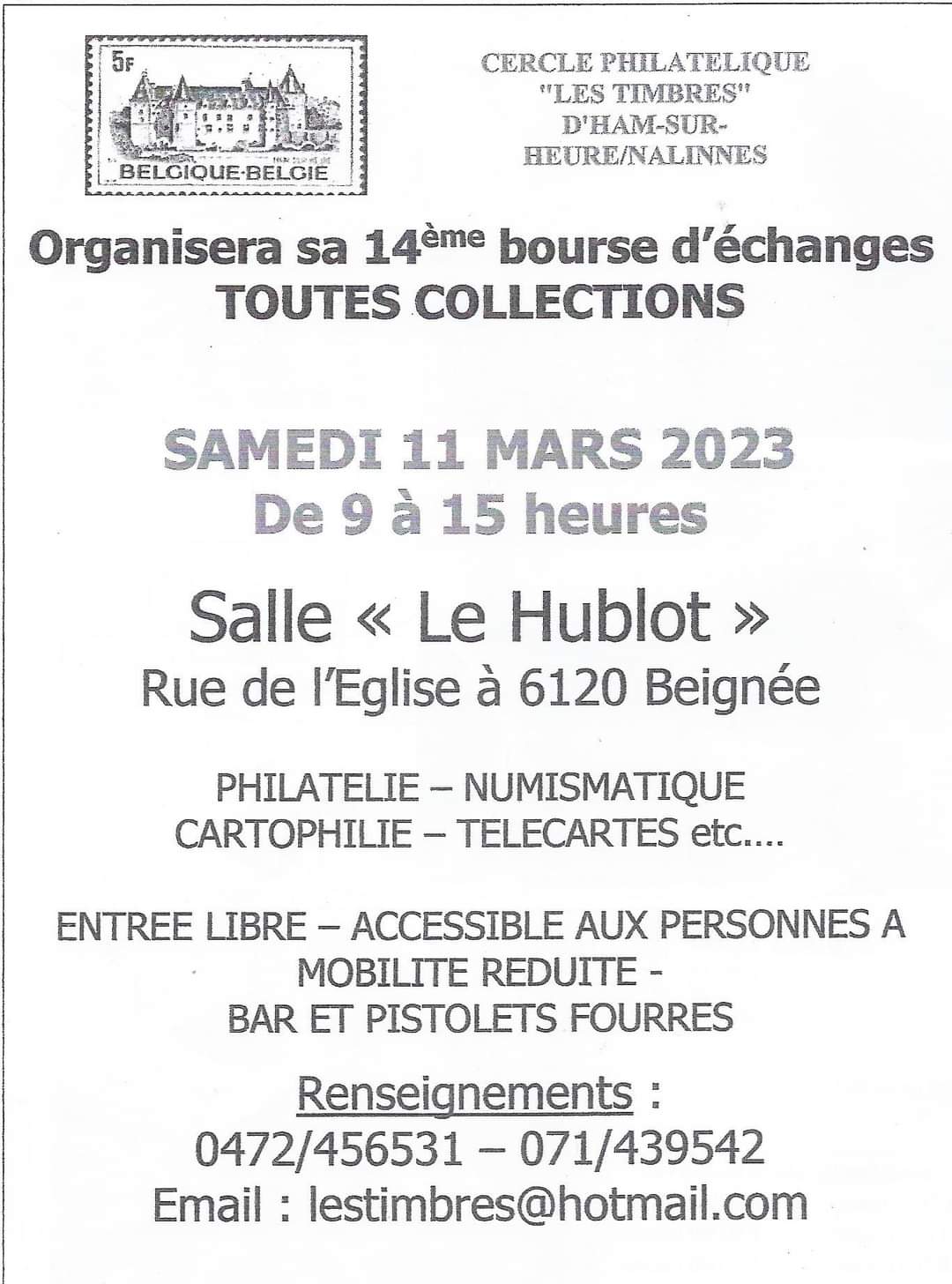 Le Cercle philatélique les "Timbrés"organise sa 14e bourse d'échanges toutes collections le samedi 11 mars à la salle le Hublot Léon Tourneur.
