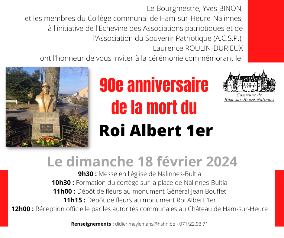 Commémoration : 90e anniversaire de la mort du Roi Albert 1er
