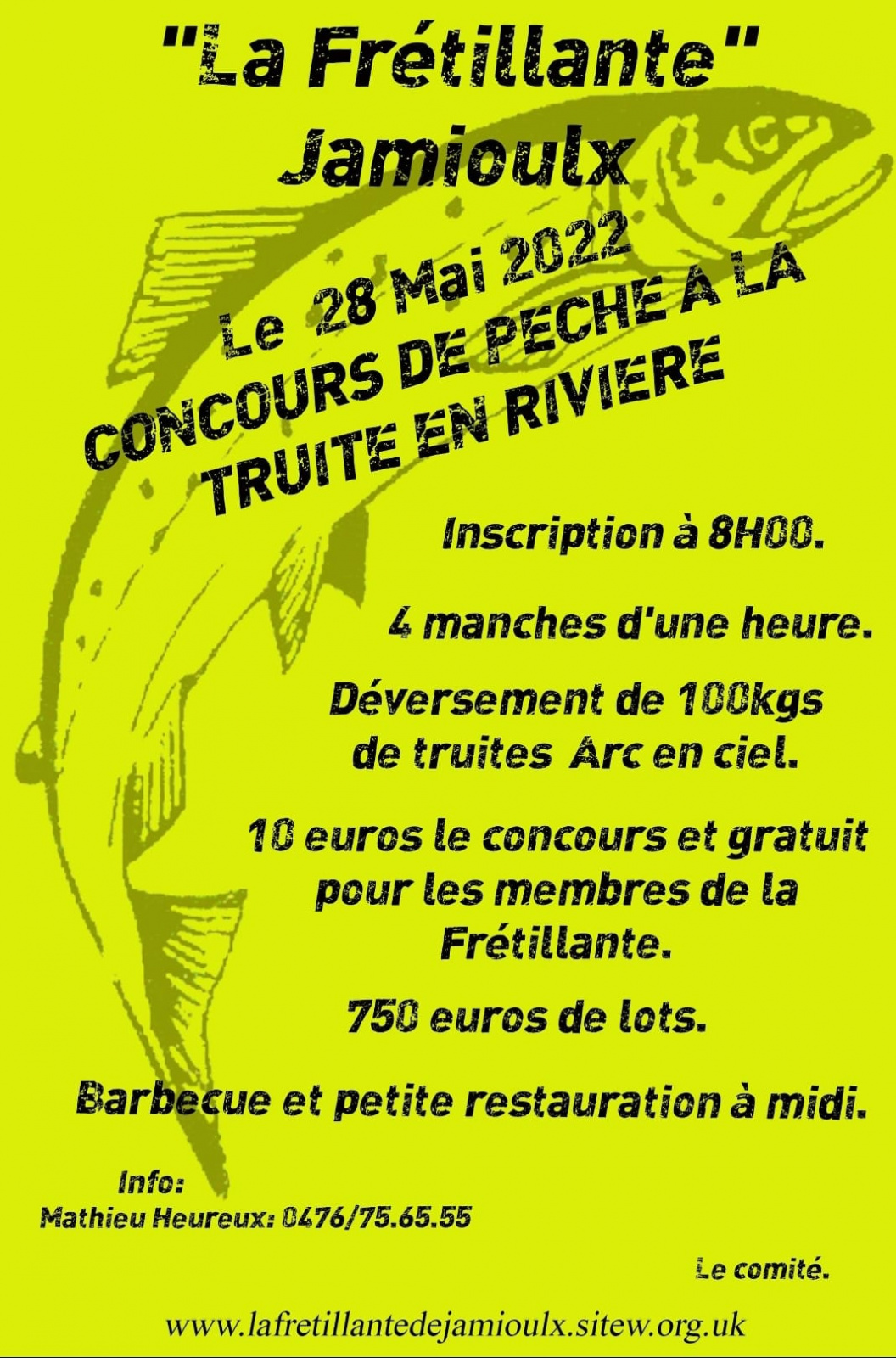 La Frétillante de Jamioulx organise son concours de pêche à la truite en rivière le samedi 28 mai 2022.