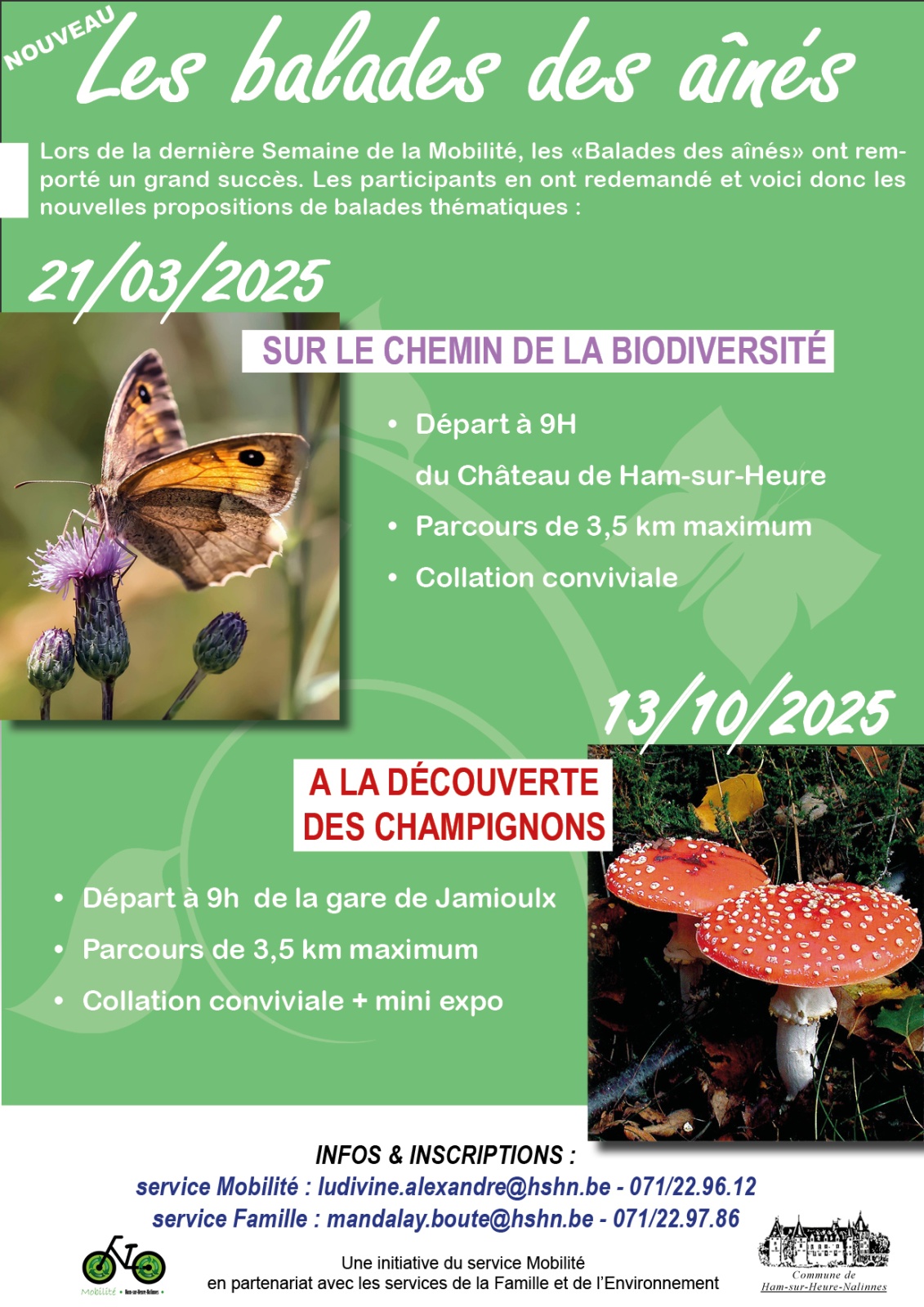 Le service Mobilité de l’Administration communale, en partenariat avec le service de la Famille, propose aux aînés de l’entité une balade thématique au départ de Jamioulx.