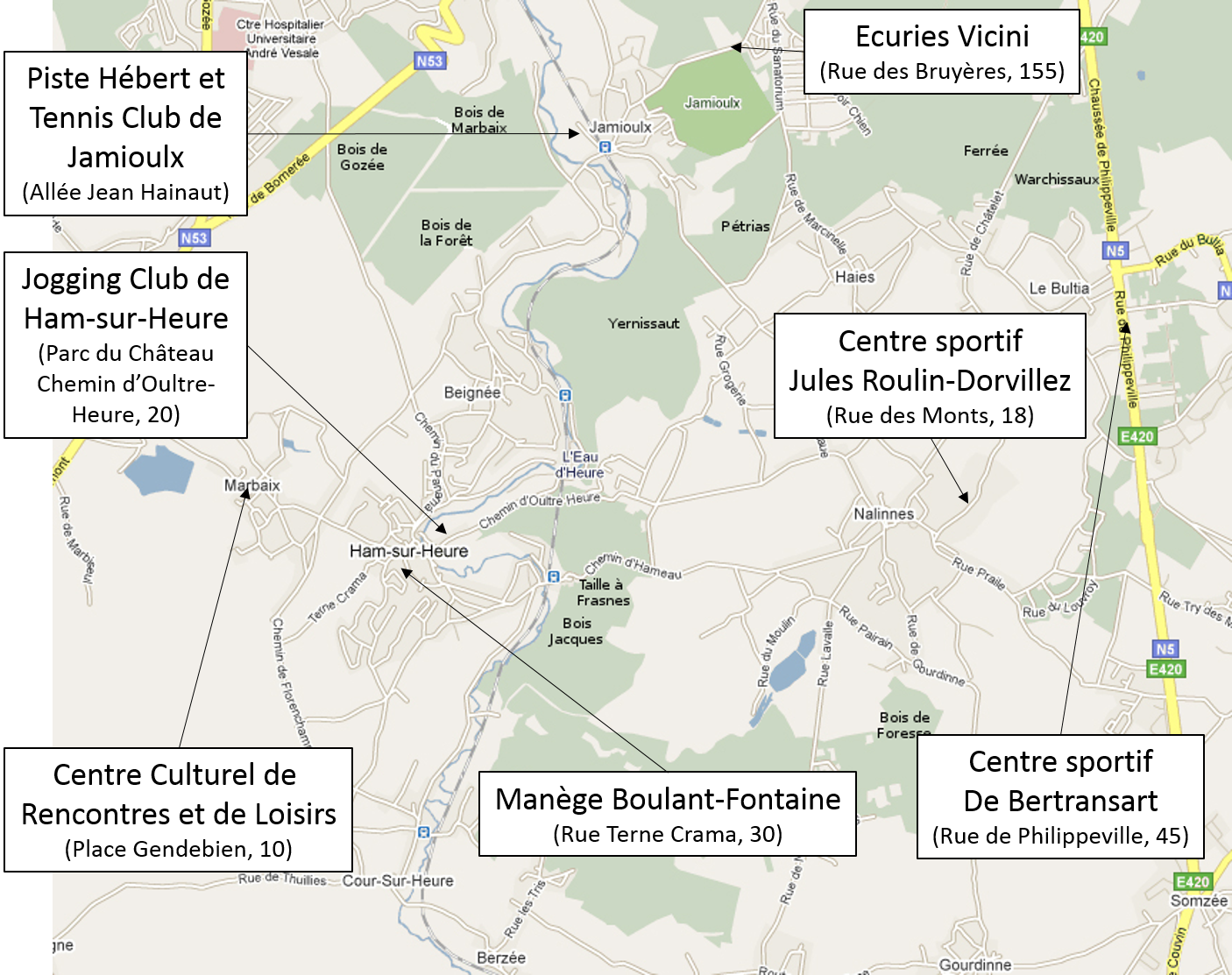 • Centre sportif de Bertransart (Chaussée de Philippeville, 45 et 49 6120 Nalinnes)