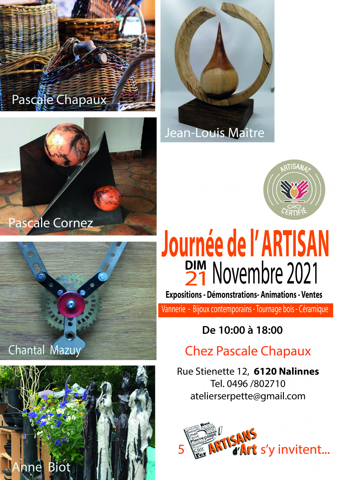 Durant toute la journée, de 10h à 18h, 5 artisans de l'entité se réunissent pour faire découvrir leur savoir-faire :