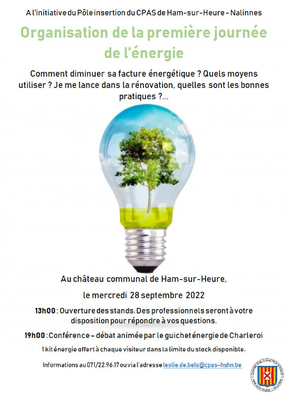Ce mercredi aura lieu la première journée de l'énergie organisée par le Pôle Insertion du CPAS de Ham-sur-Heure-Nalinnes.