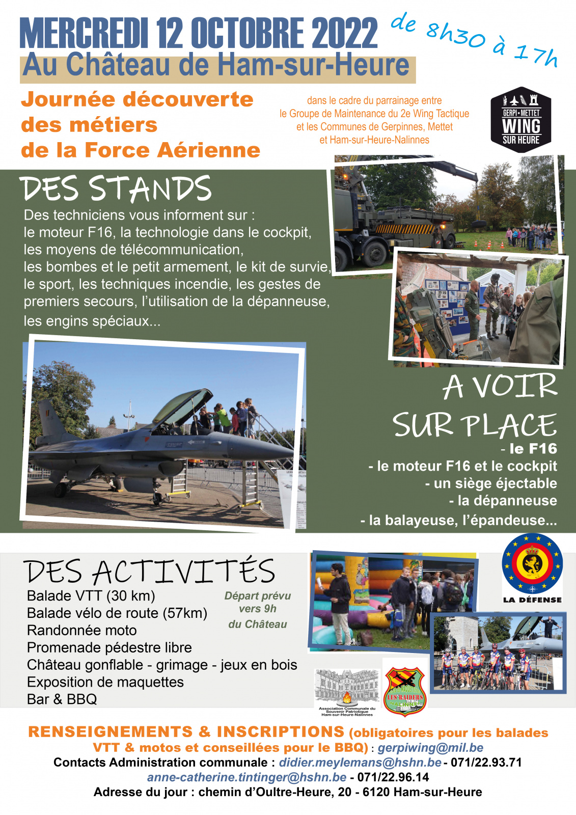 Nous avons le plaisir de vous inviter à une journée exceptionnelle organisée le 12 octobre prochain dans le cadre du parrainage entre le Groupe de Maintenance du 2e Wing Tactique de la Base aériene de Florennes et les Communes de Gerpinnes, Mettet et Ham-sur-Heure-Nalinnes.