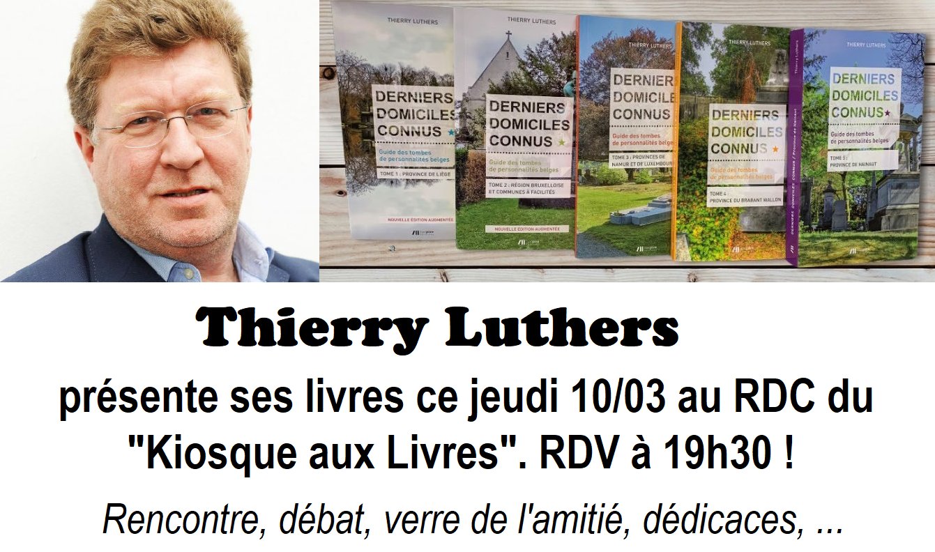 Alia Cardijn étant souffrante, c'est Thierry Luthers nous fera l'honneur de sa présence ce jeudi 10 mars 2022 au Kiosque des Auteurs.