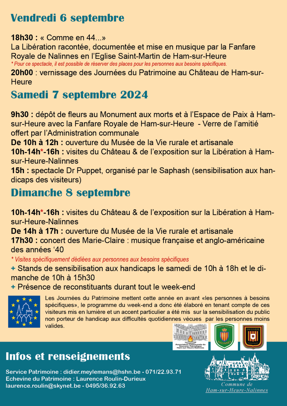 Voici le programme des festivités relatives à la commémoration des 80 ans de la Libération dans le cadre des Journées du Patrimoine :
