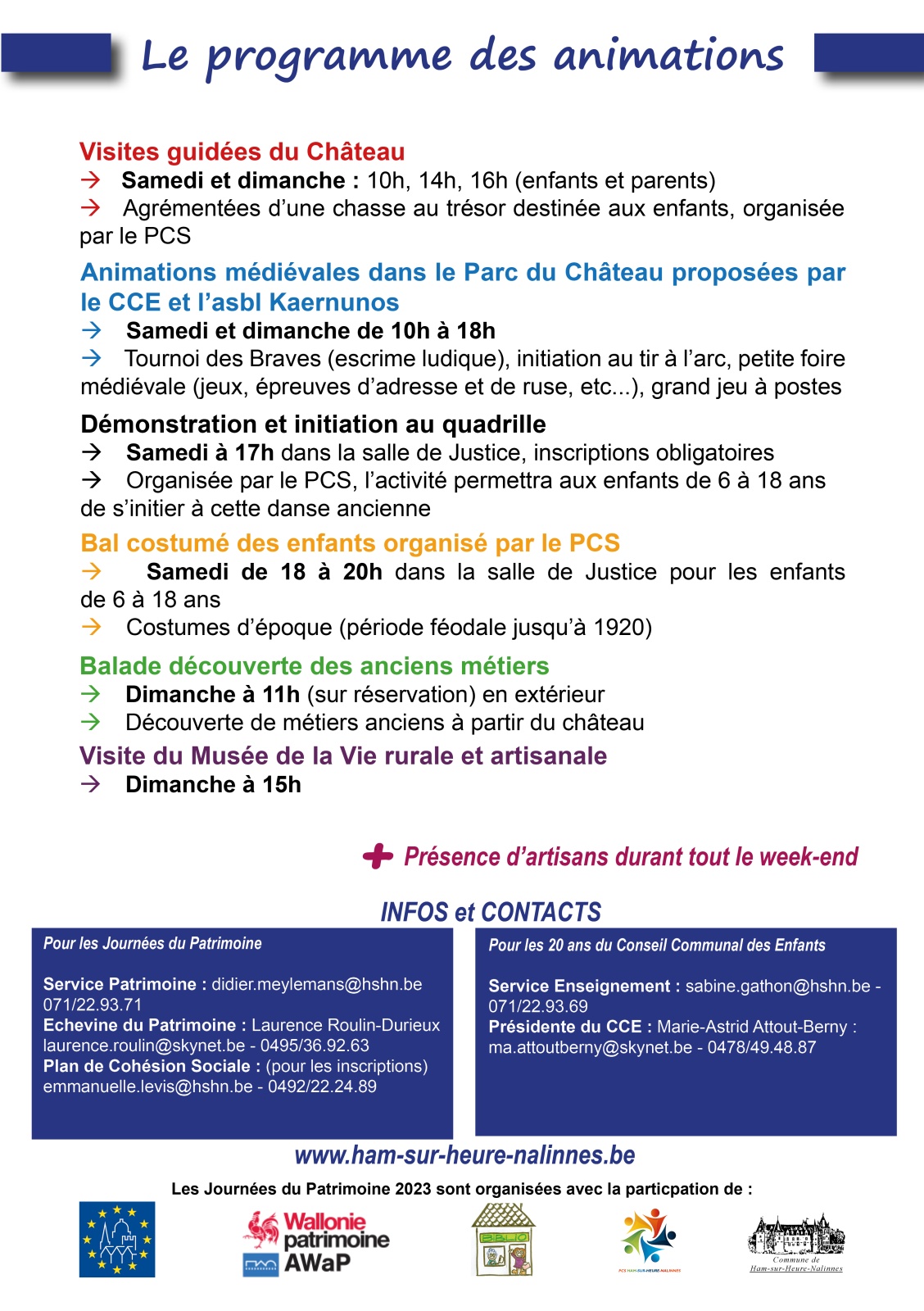 Les Journées du Patrimoine 2023 et les 20 ans du Conseil Communal des Enfants