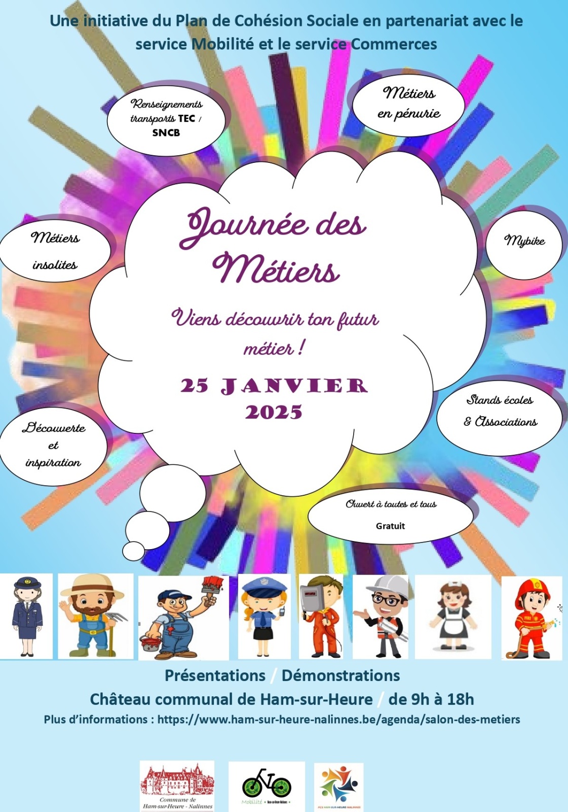 Le premier Salon des Métiers se tiendra les 24 et 25 janvier 2025. Le vendredi 24 jenvier est destiné aux visites des écoles de l'entité et le samedi 25 janvier est ouvert à tous !