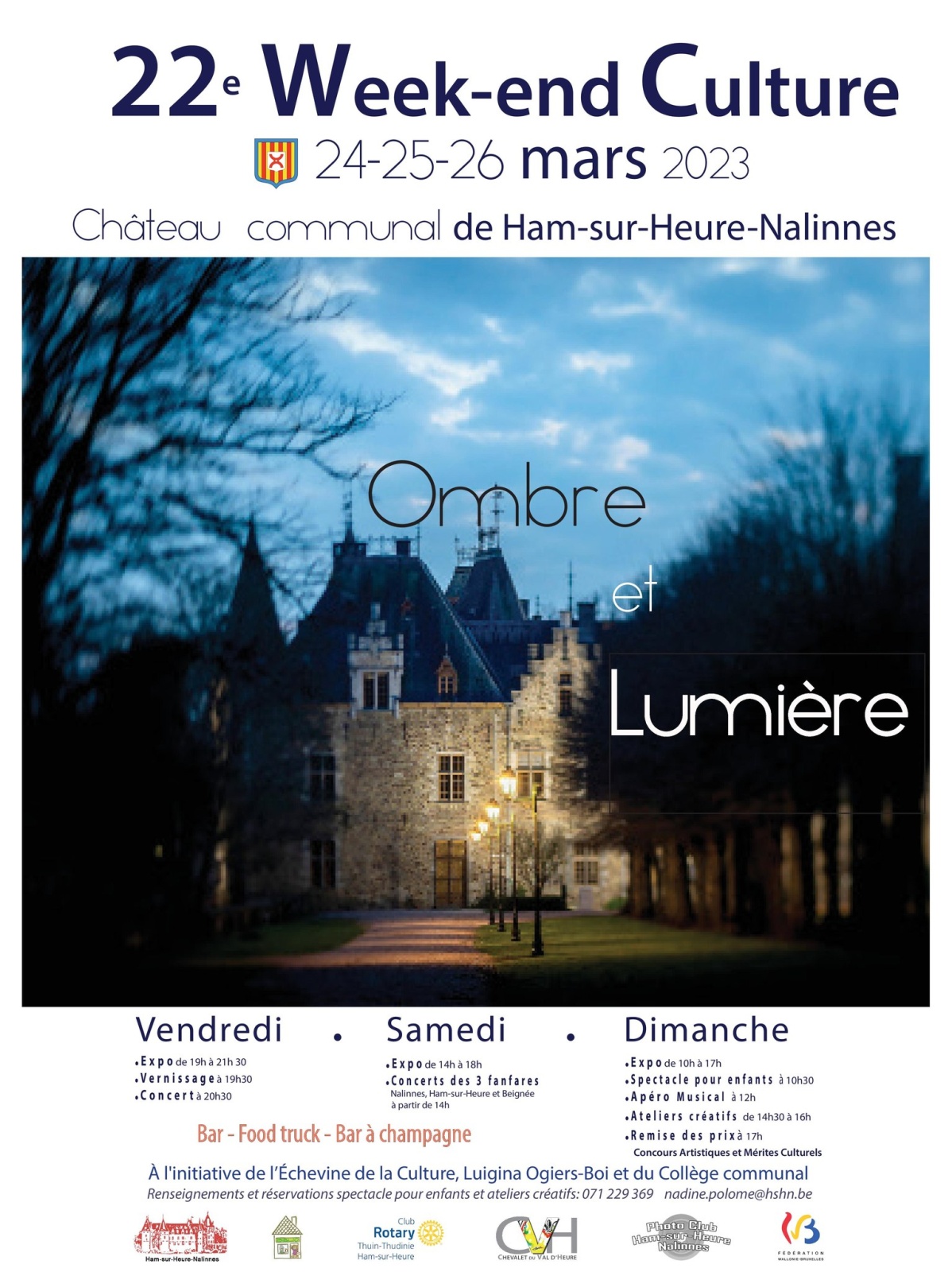Le règlement des concours de photographies et d’arts plastiques ainsi que des mérites culturels est à la disposition de tous au Service Culture, 2e étage du Château, Chemin d’Oultre-Heure, 20 à Ham-sur-Heure.