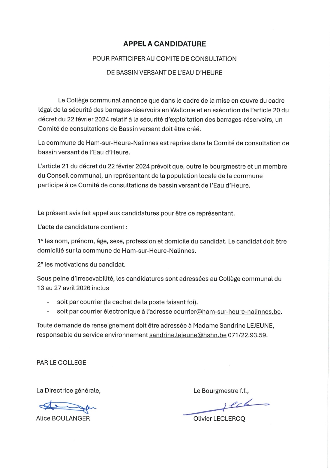 Appel à candidature pour participer au Comité de consultation de Bassin versant de l'Eau d'Heure